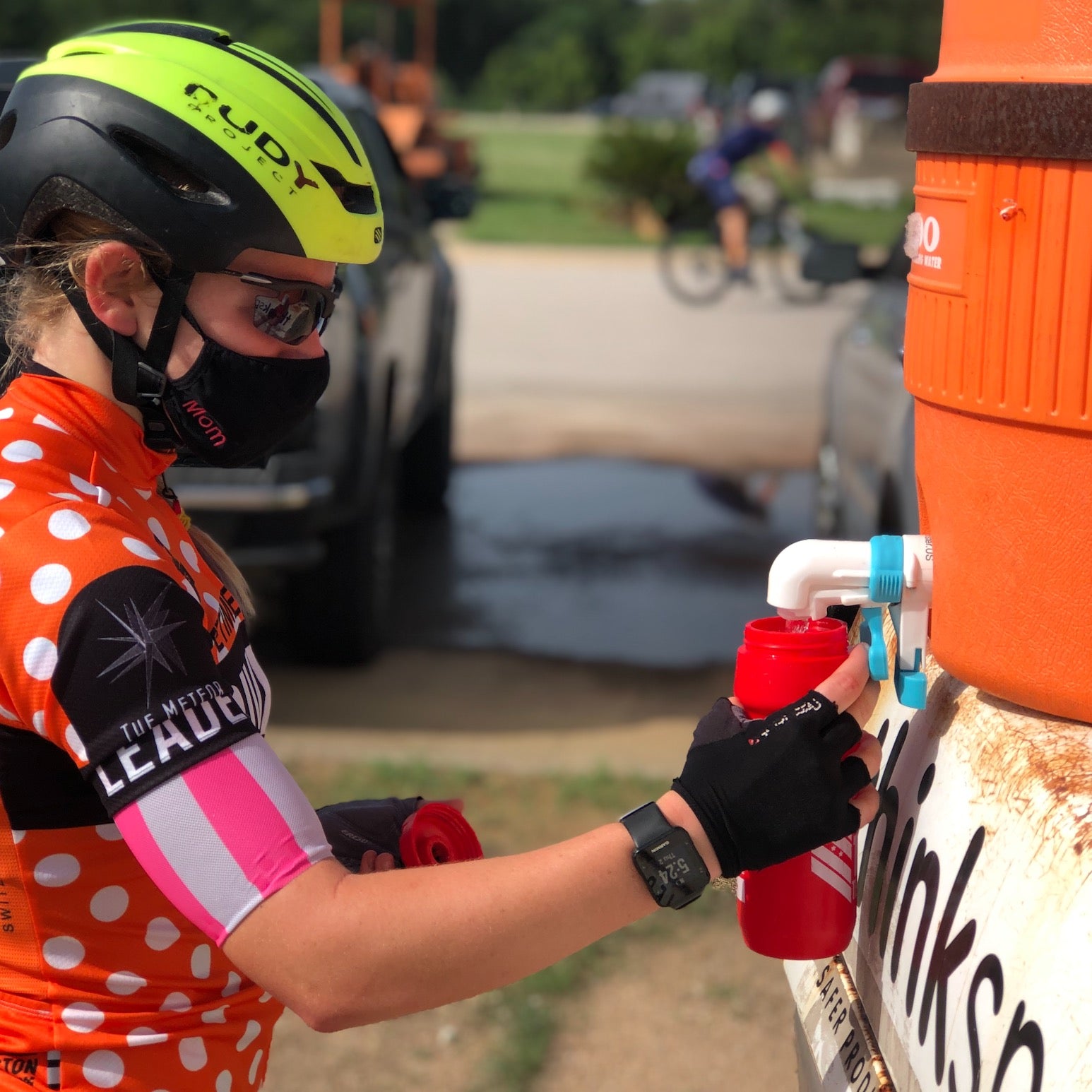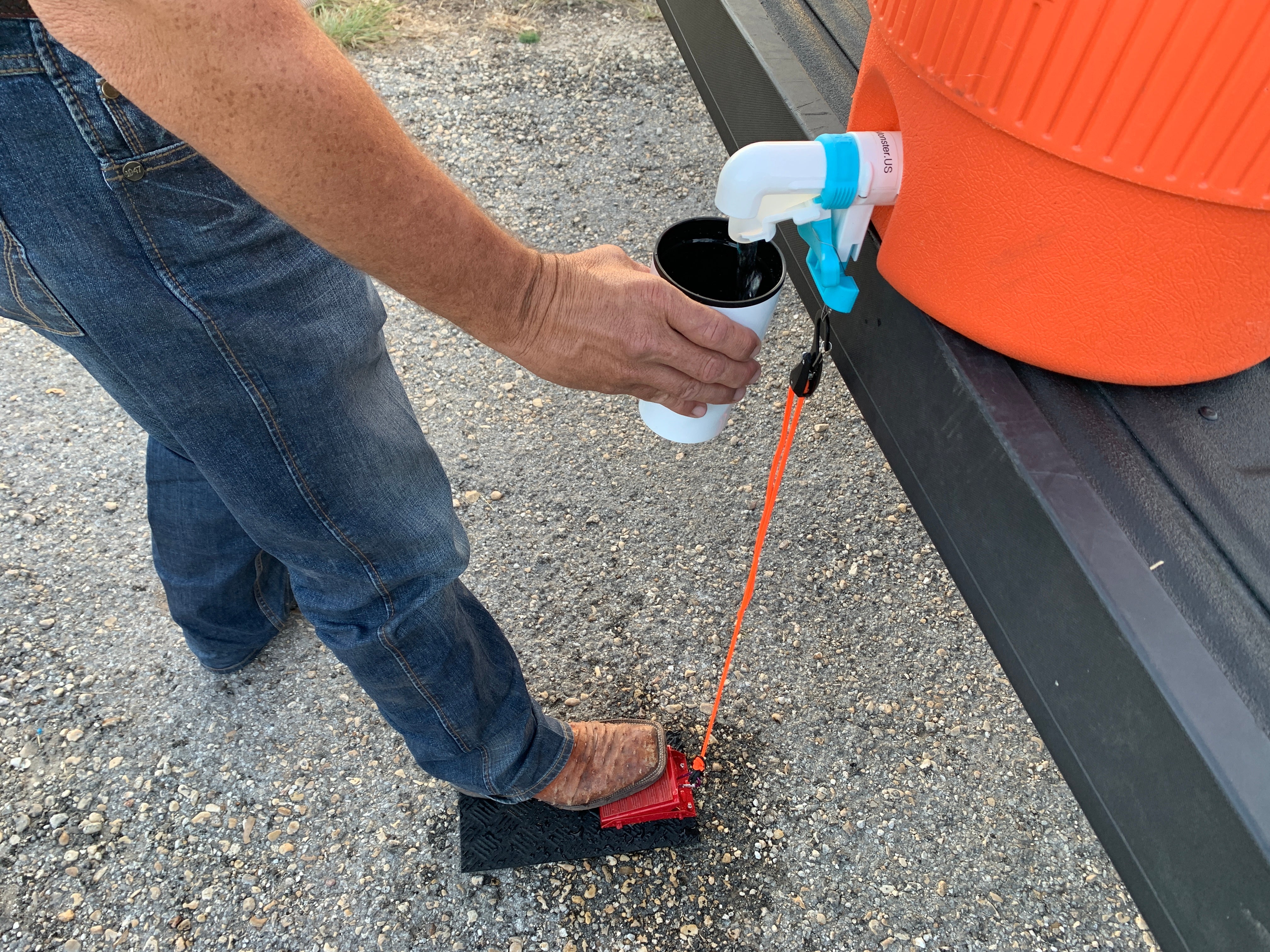 WaterMonster has a solution for those concerned about push button water dispensers. The UltraSpout dispensers will easily retro-fit to replace standard push button spigots. The UltraSpout dispenses at a rate of 8 ounces per second! That's fast enough to keep participants moving quickly. If you are concerned about participants water containers touching the UltraSpout dispensing arm, we offer a 100% touch-free solution. See our "Foot Pedal" option kit.